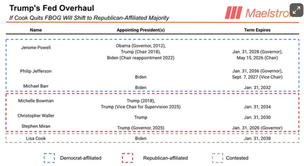 Để làm được điều này, Trump cần giành quyền ảnh hưởng lên Cục Dự trữ Liên bang (Fed), với những người ông bổ nhiệm sẽ điều chỉnh chính sách tiền tệ theo hướng in tiền, có thể thông qua một thỏa thuận với Bộ Tài chính Mỹ. Vụ lùm xùm gần đây liên quan đến Thống đốc Fed Lisa Cook, được bổ nhiệm bởi chính quyền trước, chỉ là khởi đầu.